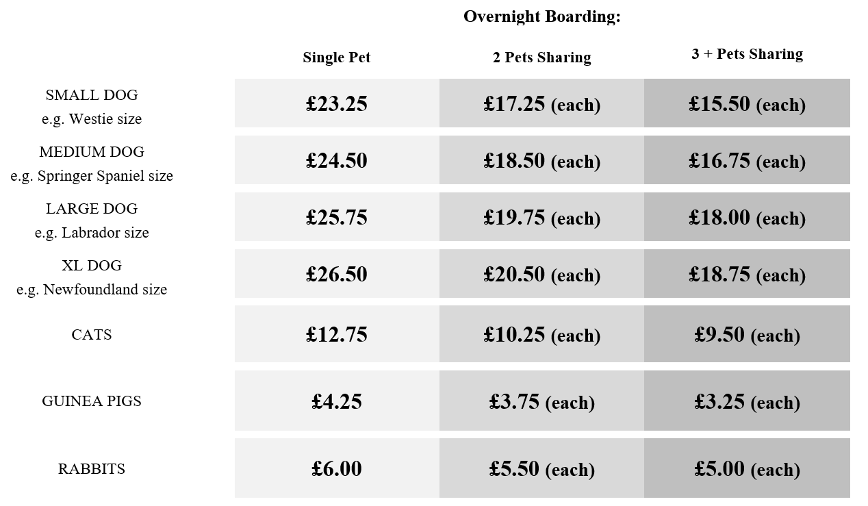 As of 1st January 2023 our boarding and grooming prices will increase.