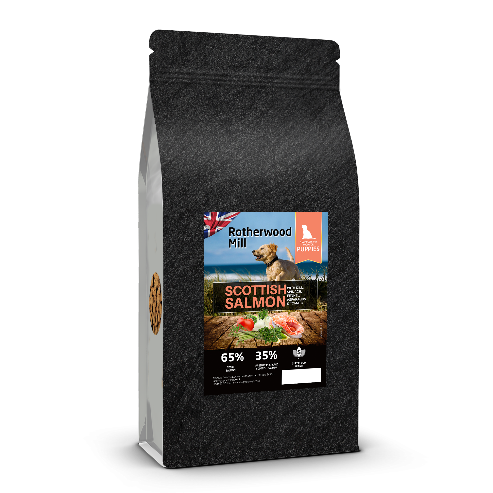 65% Salmon (35% Freshly Prepared Scottish Salmon, 22% Dried Salmon, 5% Salmon Oil, 3% Salmon Gravy), Sweet Potato, Beans, Beet Pulp, Omega 3 Supplement, Dried Superfood Blend* (Including Dill, Spinach, Fennel, Asparagus, Tomato), Minerals, Fructooligosaccharides (FOS, 192 mg/kg), Glucosamine (170 mg/kg), Methylsulfonylmethane (170 mg/kg), Chondroitin Sulphate (125 mg/kg), Mannanoligosaccharides (MOS, 48mg/kg), Nucleotides, Olive Extract (0.01%)